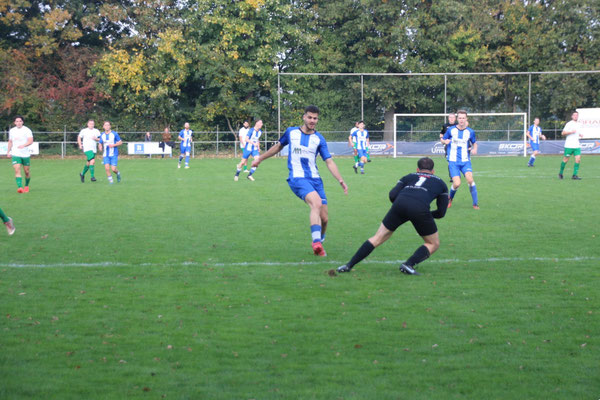 Er werden heen en weer diverse kansen gecreëerd in de eerste helft maar het was "achterman" Robin van de Wal die in de 35ste minuut het netje wist te vinden, 1-0.