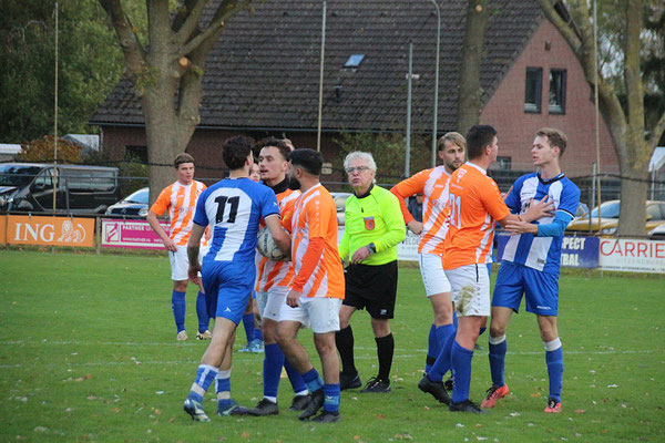 Door de zwakke leiding ontstonden hier en daar enkele opstootjes die de scheids oploste door 10 minuten te vroeg af te fluiten.