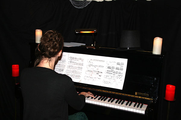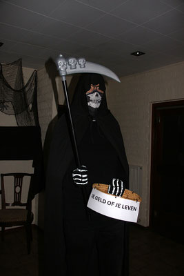 Een gepaste aankleding van de zaal met veel duistere accenten.