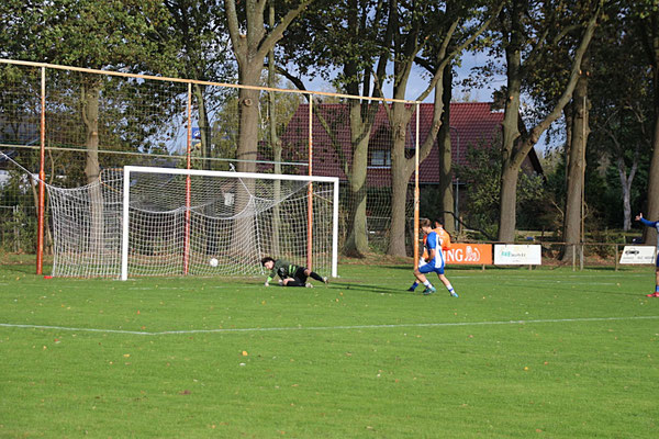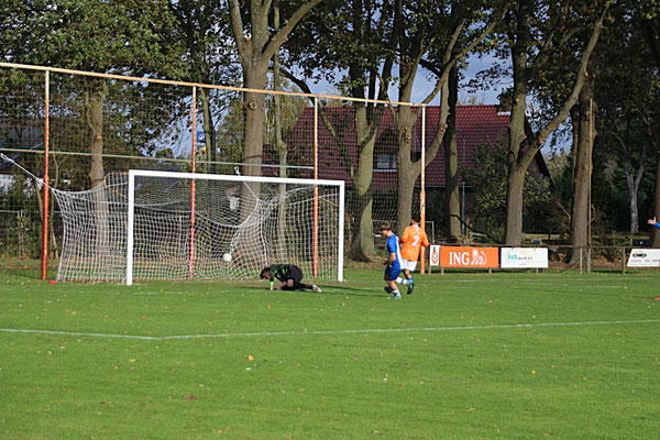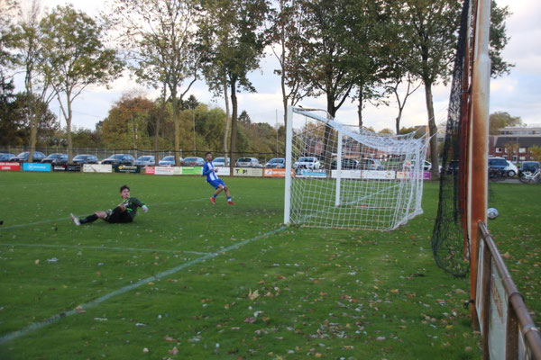 Het was enkele minuten voor voor het eindsignaal toen Ferry Stassen toch het netje wist te vinden. Echter de grensrechter dacht buitenspel geconstateerd te hebben. Na overleg met de zwak leiden scheidsrechter werd dit doelpunt alsnog afgekeurd tot frustratie van de blauw-witten.