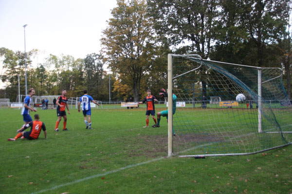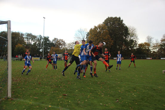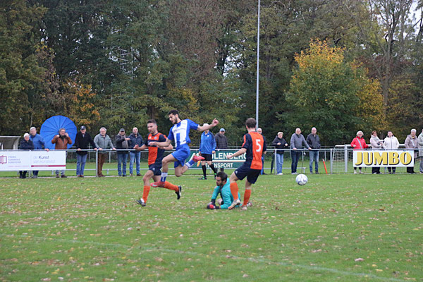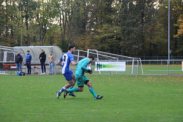 Toch bleef de tegenstander incidenteel gevaarlijk maar het was Patrick Smeets, de uit de hoed getoverde gelegenheidsdoelman, die enkele mooie reddingen uitvoerde. Hij vervangt de geblesseerde gaolie Joey Janssen die voor langere periode uitgeschakeld schijnt te zijn. (Beterschap Joey !!)
