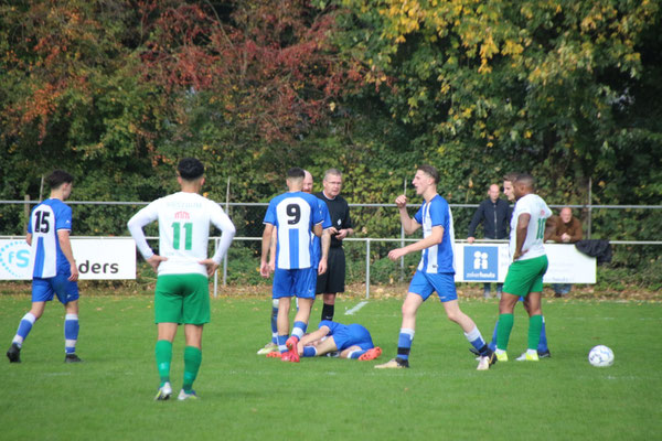 Maar in de slotfase was het tocht Urmondia die de hakbijl toepaste....3-1 , een prachtige lob van Job (Cox)