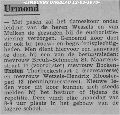Op verzoek van pastoor van Aken hadden enkele dames zich hiervoor ingezet en het was gelukt!! Het dameskoor was een feit.