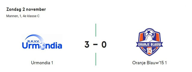Vooraf aan de wedstrijd stond tegenstander Oranje-Blauw'15 nog een plaatsje boven Urmondia in de competitiestand.